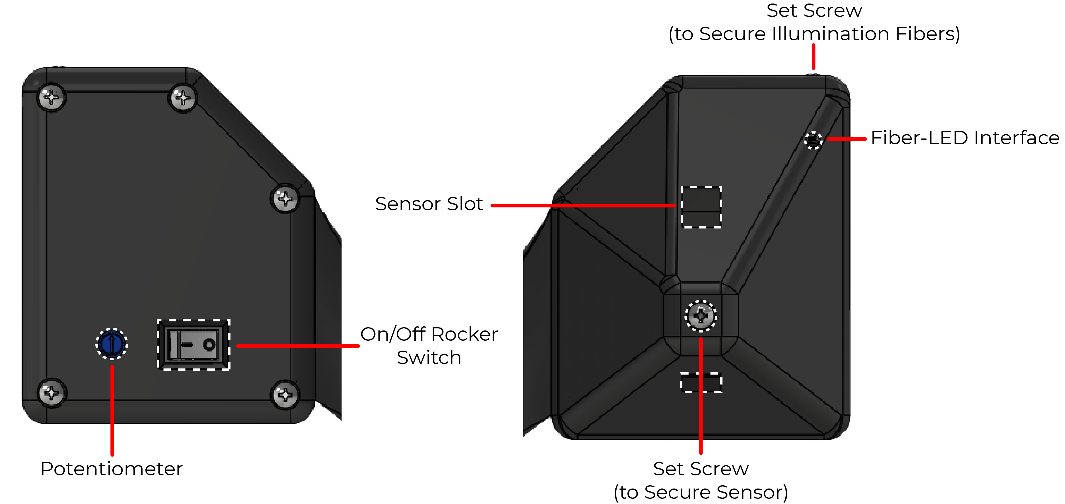 The device should allow for the sensor to be secured without needing to use set screws.