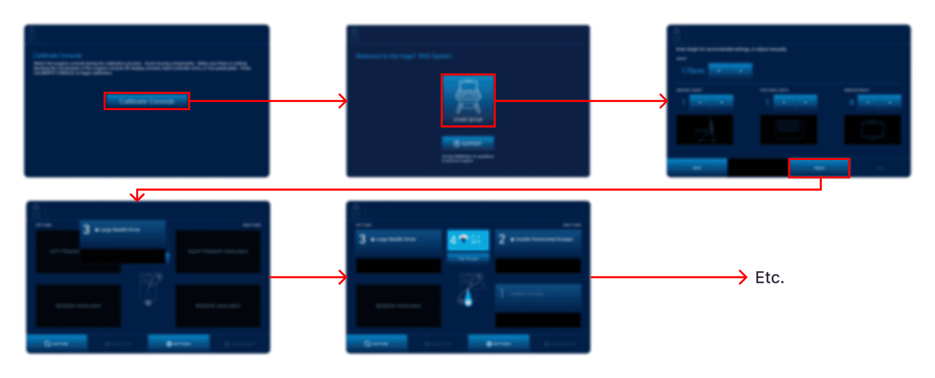 Created user flows for all Hugo™ system displays showing each step of the setup process, organized like the below example for the surgeon interactive display.